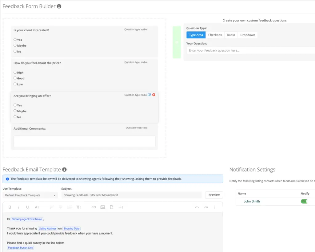 Will Feedback be editable by the agent or will the Brokerage control the questions asked?