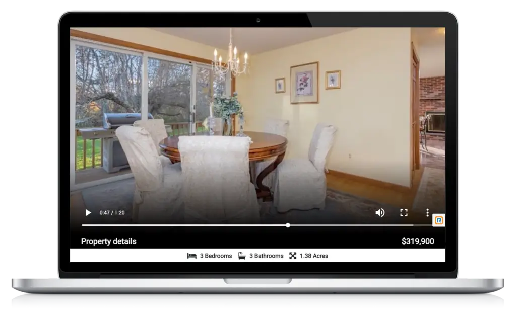 Click here to view a sample unbranded video landing page. The videos and landing pages are created automatically from the first fifteen (15) images uploaded, with a minimum of three (3) photos required. Your generated landing page will have everything you need. It will contain your real estate video, photos of the listing, your contact details, and (should you choose) your 3D 360 tour. For an even more powerful marketing experience you may opt to upgrade to a branded video.